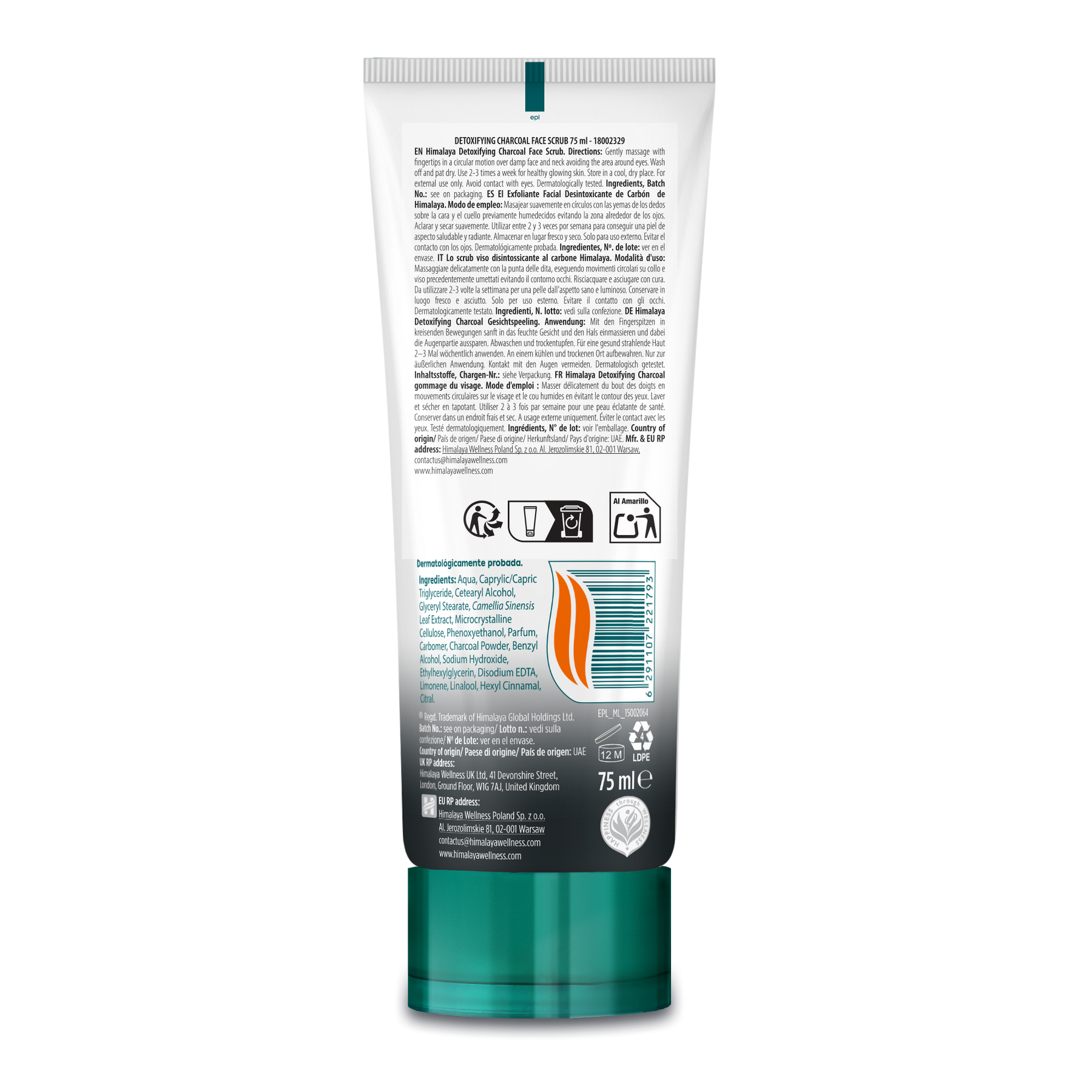 Exfoliante detoxificante de Himalaya con carbón activo y té verde que exfolia, depura la piel y elimina las células muertas dejándola suave y relajada.