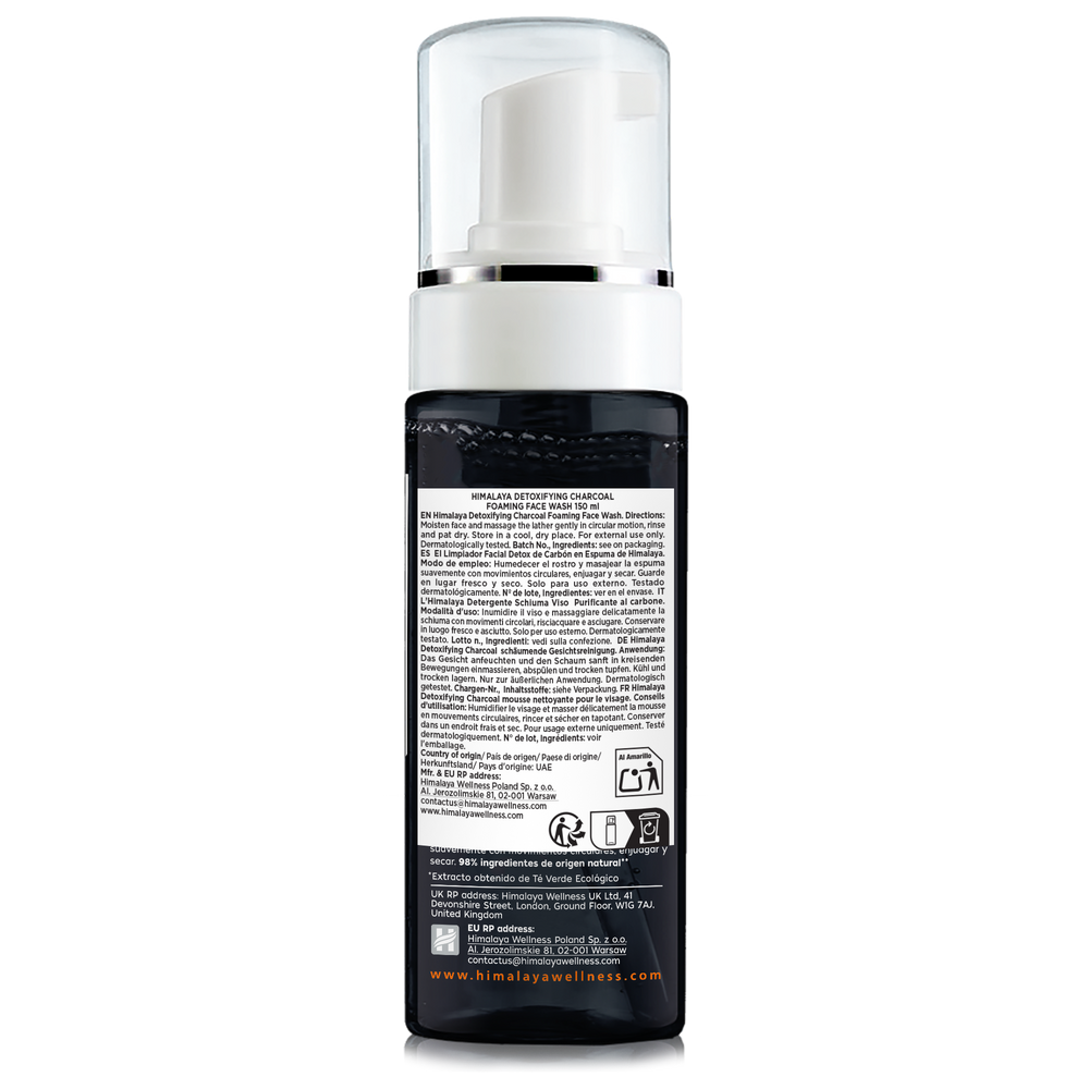 HIMALAYA ESPUMA LIMPIADORA FACIAL DE CARBÓN PURIFICANTE DE 150 ML