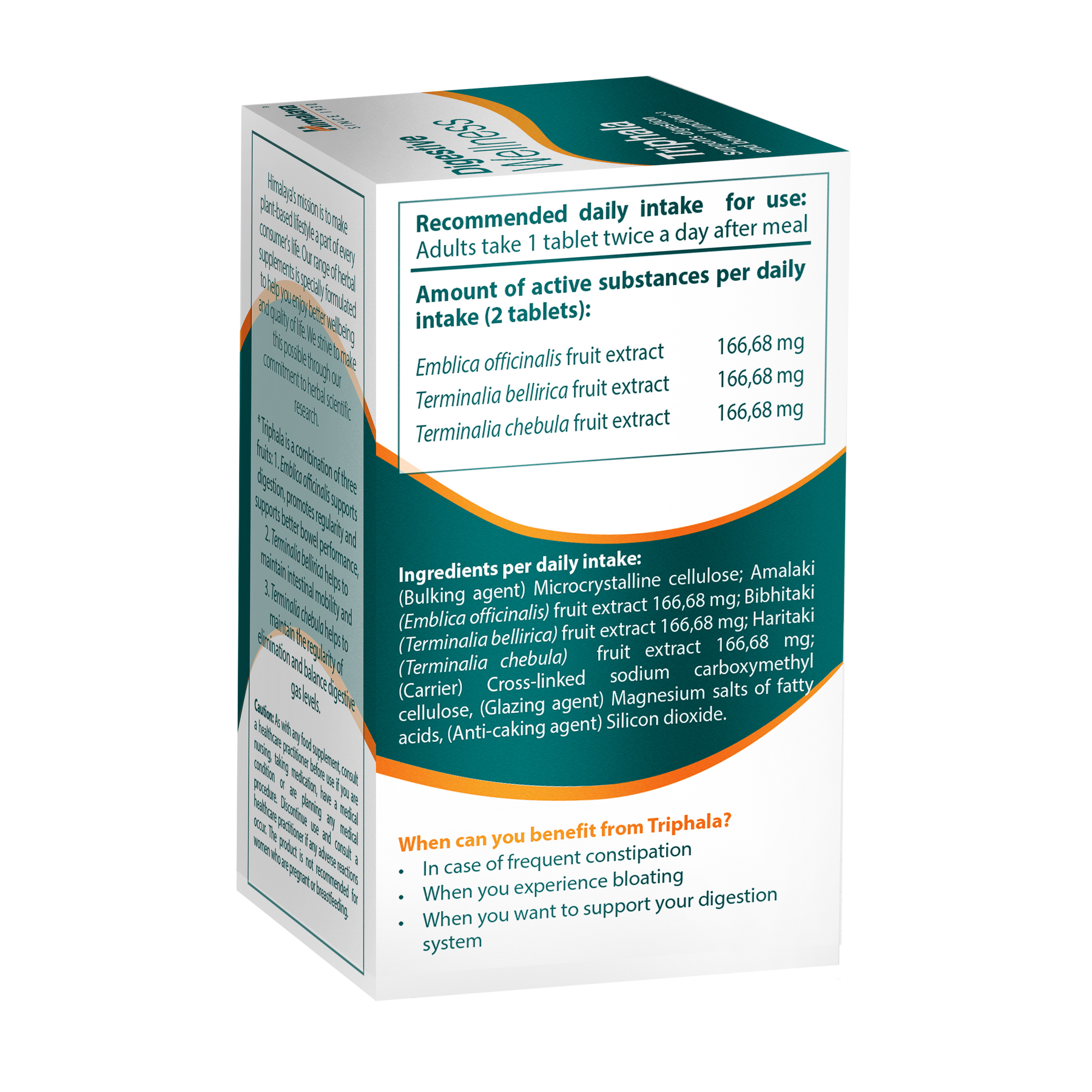 - CON TRES FRUTAS EQUILIBRANTES – Cada comprimido contiene Triphala (Emblica officinalis, Terminalia bellirica y Terminalia chebula), hierbas tradicionales que favorecen la digestión y promueven la regularidad de forma natural.