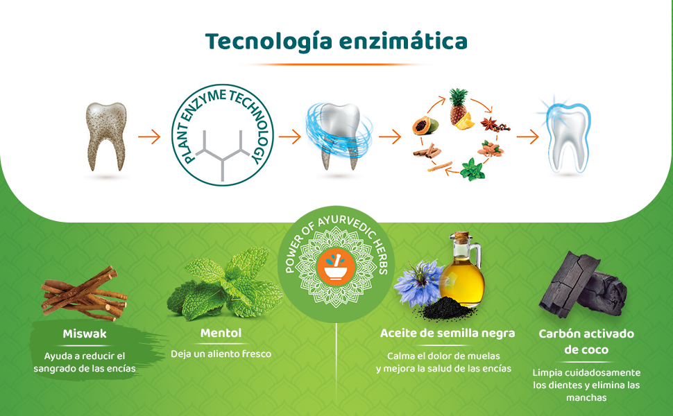 Miswak, Aceite de semilla negra, Carbón activado de coco, Mentol