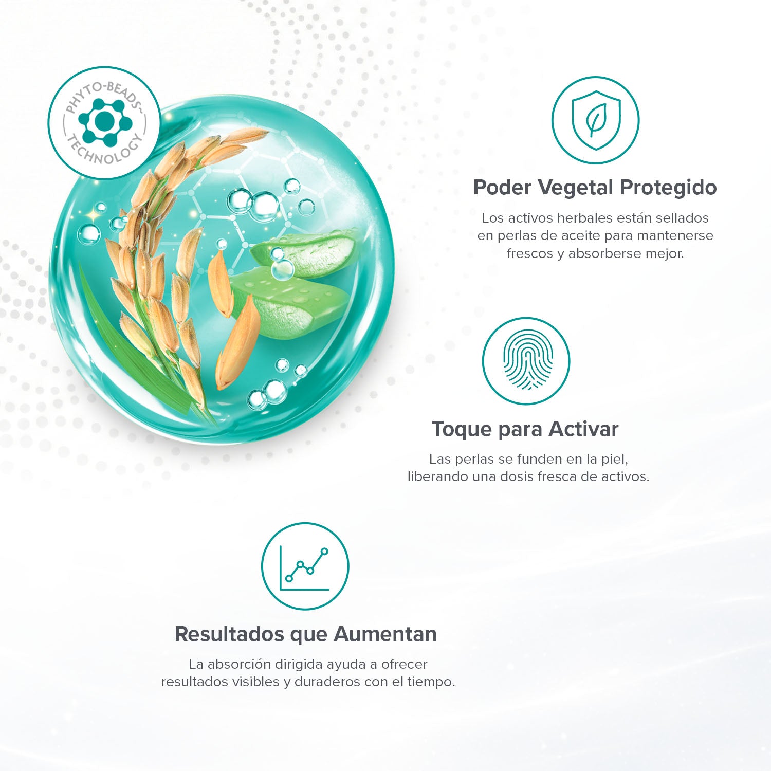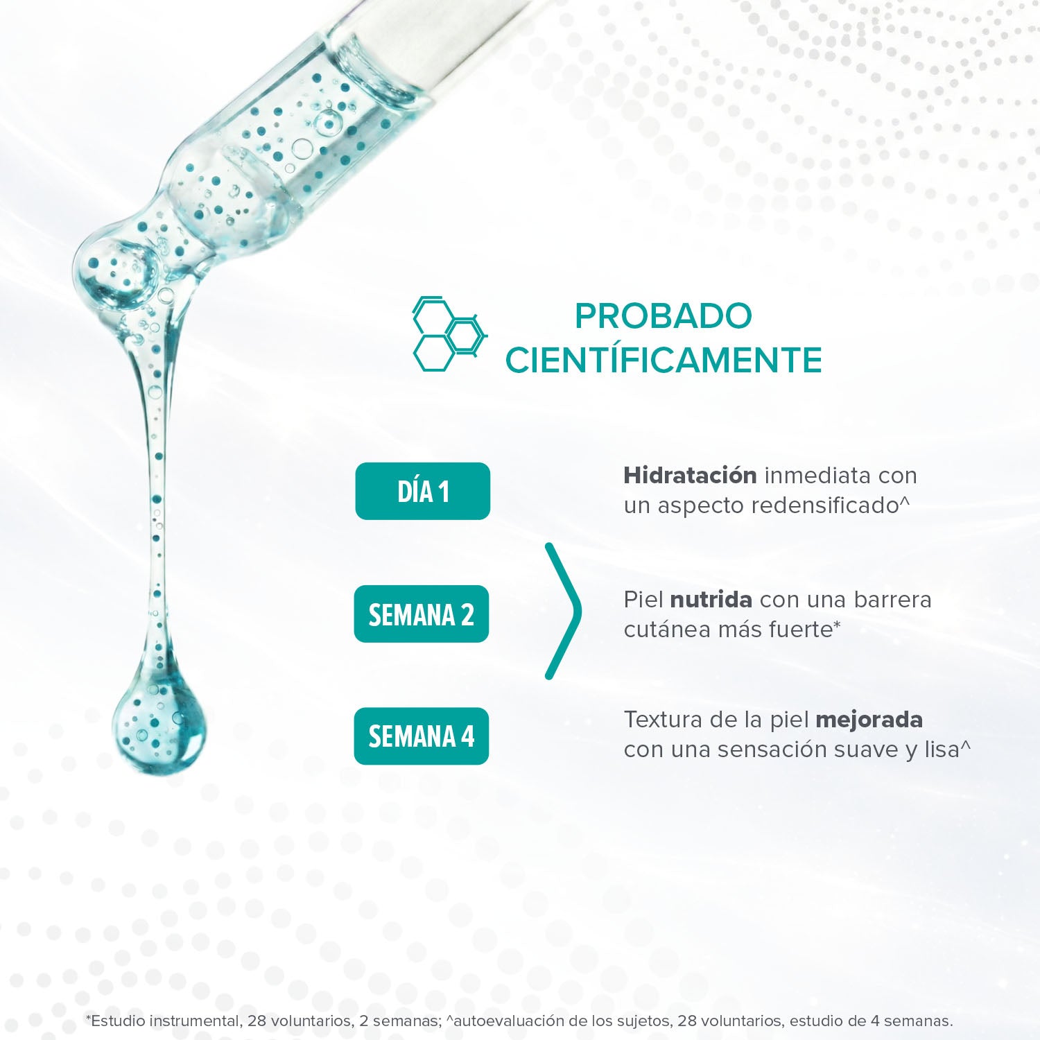 - Sérum hidratante que proporciona hasta 24 horas de hidratación continua y efecto redensificador.