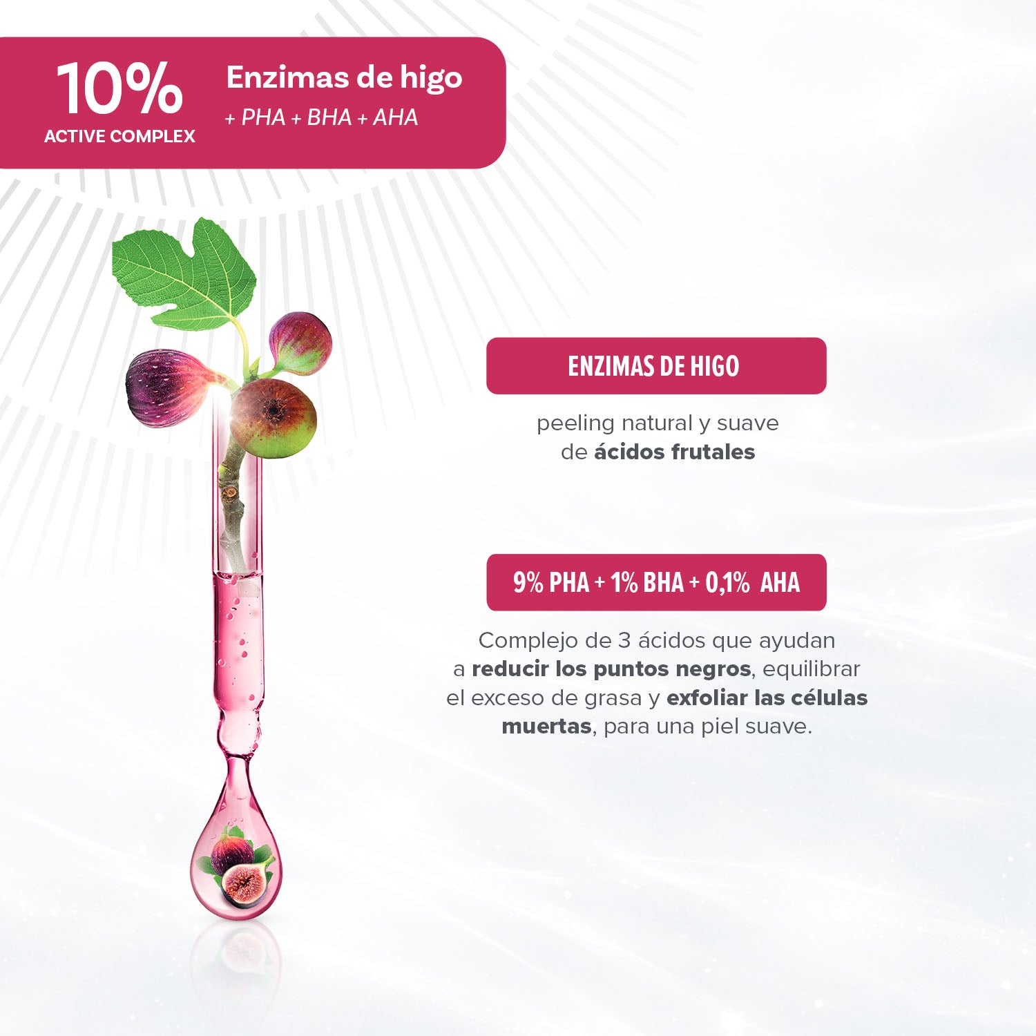 Enriquecido con extracto de higo, su fórmula aporta antioxidantes, ayuda a mantener la hidratación y potencia la luminosidad natural de la piel, contribuyendo a reducir la opacidad y el tono desigual. Su textura ligera y no pegajosa se absorbe rápidamente sin resecar, lo que lo hace ideal para integrarlo en la rutina diaria junto con la crema hidratante y el protector solar.
