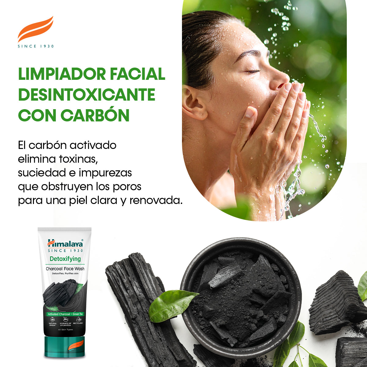 Detoxifying Charcoal Face Wash de Himalaya contiene polvo de carbón vegetal de coco y las bondades del té verde. Este lavado facial, con las propiedades de adsorción del polvo de carbón vegetal de coco, ayuda a eliminar la suciedad y a reducir la grasa. Las propiedades antioxidantes del té verde ayudan a purificar la piel, dejándola limpia y fresca.